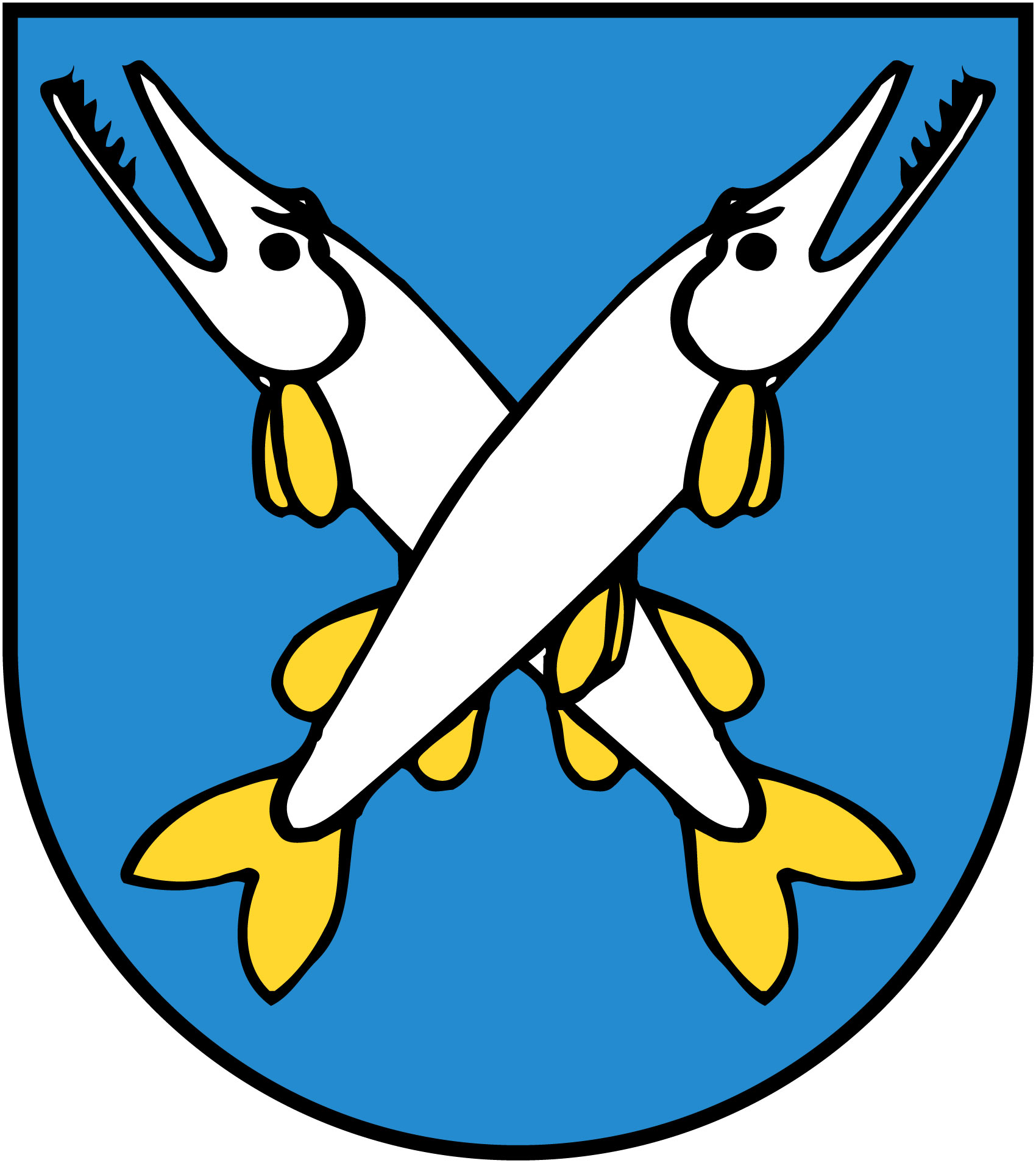 Heraldische Darstellung mit dem Hecht als Wappentier